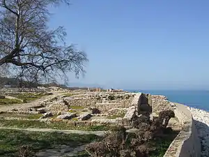 မြို့ဟောင်းတူးဖော်ရာတွင် ဘီစီ ၄ ရာစု နှင့် ၃ ရာစုမှ ဒင်္ဂါးပြားများကို တွေ့ရသည်။ ထိုဒေသတစ်ဝိုက်တွင် မြို့၏ပုံစံကို အထင်အရှားပင် တွေ့ရှိနိုင်သေးကာ အိမ်အများအပြားမှာ တံတိုင်းများ ကျန်ရှိသေး၍ မျက်နှာစာရှိ ရောင်စုံရွှံ့များကို မြင်နိုင်ဆဲပင် ဖြစ်သည်။ အိမ်များကို ပုံစံတကျ တည်ဆောက်ထားပြီး ခေတ်မီသော မြို့စီမံပုံအတိုင်း ဖြစ်သည်။