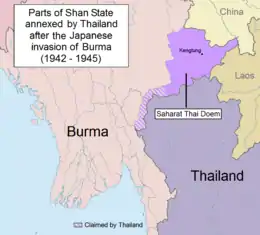 ၁၉၄၂တွင် ဂျပန်စစ်တပ်နှင့်အတူ ထိုင်းစစ်တပ်က ရှမ်းပြည်နယ်များကိုကျူးကျော်ခဲ့သည်။ဗြိတိသျှ၏အကူအညီတောင်းခံမှုကြောင့် တရုတ်တပ်များက ကျိုင်းတုံနေရာများကိုစောင့်ရှောက်ကြသည်။တရုတ်အမှတ်၉၃တပ်မှ ကျိုင်းတုံကို ခုခံပြီး ၂၄၉နှင့်၅၅တပ်တို့မှ ကျိုင်းတုံနှင့်ကရင်နီဒေသများမှခုခံသည်။ဂျပန်လေတပ်ကြောင့် ၁၉၄၂နိုဝင်ဘာတွင် တရုတ်တပ်များကိုကျော်နိုင်ခဲ့သည်။ဂျပန်စစ်တပ်မှာ ဆိုင်ယန်စစ်တပ်ကို ကျိုင်းတုံဒေသနှင့်ကရင်နီဒေသအချို့ကိုခွဲဝေပေးသည်။ထိုင်းနှင့်ဂျပန်အကြားချုပ်ဆိုသော စာချုပ်များအရ ထိုင်းတပ်၏ကျိုင်းတုံဒေသများကို တိုက်ခိုက်ခြင်းကို သဘောတူခဲ့သည်။မောက်မယ်ဒေသမှ ၂ခရိုင်ကိုလည်း ထိုင်းမှလိုချင်ခဲ့သည်။ထို့အတူ အရှေ့သံလွင်ရှိ ကန္ဒရဝတီဒေသပါ ပါဝင်သည်။
