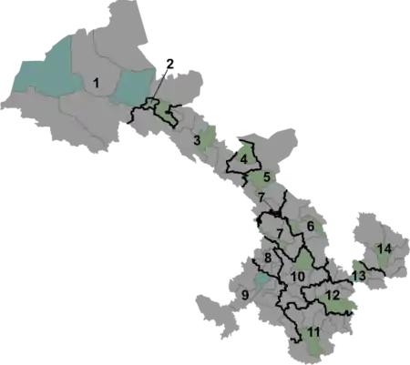 | ခရိုင်ကြီး(Prefecture)အဆင့် | ၁၄ ခု | ||||||||