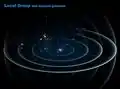 ကမ္ဘာသည် နေကိုဗဟိုပြု၍ ပျမ်းမျှ ကီလိုမီတာ ၁၅၀ မီလီယံ (၉၃ မီလီယံမိုင်) အကွာအဝေးမှ လှည့်ပတ်လျက်ရှိကာ မိမိဝင်ရိုးပေါ်တွင် ၁ ပတ် လှည့်ပတ်မိရန် ပျမ်းမျှ ၂၄ နာရီ ကြာမြင့်သည်။ ကမ္ဘာ၏ ပတ်လမ်းအမြန်နှုန်းသည် တစ်စက္ကန့်လျင် ၂၉.၇၈ ကီလိုမီတာ (တစ်နာရီလျင် မိုင်ပေါင်း ၆၆၆၀၀) နှုန်းဖြစ်သည်။ ယင်းအမြန်နှုန်းဖြင့် ကမ္ဘာ၏ အချင်း ၁၂၇၄၂ ကီလိုမီတာ (၇၉၁၈ မိုင်) အား ၇ မိနစ်အတွင်း၊ ၃၈၄၀၀၀ ကီလိုမီတာ (၂၃၉၀၀၀ မိုင်) ကွာဝေးသော လကမ္ဘာသို့ ၃.၅ နာရီတို့ဖြင့် ခရီးပေါက်နိုင်သည်။[3] ကမ္ဘာသည် နေအဖွဲ့အစည်းနှင့်အတူ နဂါးငွေ့တန်း ဂလက်ဆီ၌ တည်ရှိပြီး ဗဟိုမှ အလင်းနှစ် ၂၈၀၀ ကွာဝေးသည်။