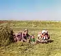 ဂိုလော့နာယာ မြက်ခင်းလွင်ပြင်ရှိ ရွှေ့ပြောင်းနေထိုင်သူ ကာဂျစ် မိသားစု တစ်စုကို ၁၉၁၁ တွင် တွေ့ရစဉ်။ Prokudin-Gorskii