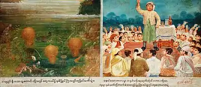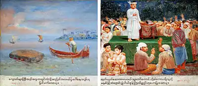 နောင်အခါ တရားမစောင့်သော မင်းတို့သည် မတရား အုပ်စိုးခြင်း၊ တံစိုးစားခြင်း၊ လော်လည်ခြင်း၊ သနားညှာတာ ကရုဏာ မဲ့ခြင်း၊ ကြမ်းကြုတ် ရက်စက်ခြင်းတို့ ရှိလျှက် လူတို့အပေါ်၌ အထူးထူး အပြားပြားသော အချင်းအရာဖြင့် အခွန်အတုတ်တို့ကို ခွဲခန့် ကောက်ယူလတ္တံ့။ ထိုအခါ လူတို့မှာ တစ်စုံတစ်ရာ မပေးဆောင်နိုင် ပင်ပန်းဆင်းရဲလျက် မြို့ကြီးရပ်ကြီးတို့၌ မနေနိုင်ပဲ ရပ်စွန် ပြည်နားသို့ သွားရောက်နေကြရသည် ဖြစ်လတ္တံ့။ ကန်အလယ်တွင်နောက်၍ ကန်ဘေးတွင် ကြည်သကဲ့သို့ မြို့လယ်ရွာလယ်၌ တိတ်ဆိတ်၍ ရပ်စွန်ပြည်နား၌ လူစည်ကားလတ္တံ့။