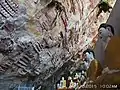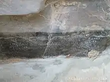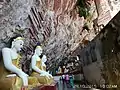 သက္ကရာဇ်ပါရှိသော မင်စာများကို တင်ပြရလျှင် (၁) ၁၀၅၇ ဂိတုဖဝ်ရ၊ (၂) ဂိုန်၁၀စေဝက်တဲ၁၊ (၃)သော်ကိုပ် ပညာတိက္ခပ၊ (၄)... ရပ်သဗ္ဗညုတတဲ ၁၀၇ဖရေ၊ (၅) ဝ် ၁၁ ရာဇာဓိရာဇ် ၁၊ နိဗ္ဗာန် ၁၊ ၆ ပံင် ၁၂၀ဇိုန်ပိုန်... ၊သက္ကရာဇ် (၁၀၅၇)၊ တပေါင်းလပြည့်ကျော်(၁၀) ရက်၊ တနင်္ဂေနွနေ့တွင် (အသျှင်) ပညာတိက္ခကို အမှူးပြု၍ သဗ္ဗညုတ (၁၀၇) ဆူ၊ ဖာရေဝ် (၁၁) ဆူ၊ရာဇာဓိရာဇ် (၁) ဆူ၊ နိဗ္ဗာန် (၁) ဆူ ပေါင်း (၁၂၀) ဆူ... (အမျှပေးဝေပါ၏) ဟူသောမင်စာကိုလည်းကောင်း၊ သက္ကရာဇ် (၁၁၅၇)၊ တန်ခူးလပြည့်ကျော် (၉)ရက်၊ ကြာသပတေးနေ့တွင် မိစဟ်က ဘုရား (၂၀၆) ဆူအား လှူဒါန်းပြီး အမိအဖနှင့် ဆွေမျိုး (၇) ဆက်တို့အားအမျှဝေပါသည် ဟူသော မင်စာကိုလည်းကောင်း တွေ့ရှိရသည်။ အမည်းရောင်အောက်ခံဆေးသားပေါ်၌ အဖြူရောင်မင်ဖြင့် ရေးသားထားသော စာကြောင်းရေ ၃ ကြောင်းပါမင်စာကို တွေ့ရှိရသည်။ ဤမင်စာ၌ ရေးသားဖော်ပြထားသော စာအရေးအသားမှာ အလွန်ရှေးကျလှသည်။ ဖော်ပြထားသော စာသားအဓိပ္ပါယ်ကိုယနေ့ထိတိုင်အောင် ပြည့်စုံစွာဖော်ထုတ်နိုင်ခြင်း မရှိသေးချေ။ မင်စာပါမူရင်းအရေးအသားကို ကူးယူတင်ပြရလျှင်အထက်ပါအတိုင်းတွေ့ရသည်။ ယခင်ပညာရှင်များ၏ လေ့လာသုံးသပ်ချက်အရ အေဒီ (၆) ရာစုတွင် ရေးထိုးခဲ့သော အိန္ဒိယတောင်ပိုင်းရှိ ပလ္လဝနှင့် ကဒမ္ဗအက္ခရာအရေးအသားနှင့်တူသည့်အပြင် ၎င်းခေတ်ထိုးကမ္ဘောဒီးယား(ခမာ) ရှေးဟောင်းအက္ခရာတို့နှင့် ဆင်တူသည်ဟု သုံးသပ်ခဲ့ကြသည်။
