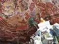 ကော့ဂွန်းဂူ၌ ကျောက်ရုပ်ကြွသုံးခုကို ယှဉ်တွဲတွေ့ရှိရပြီး နှစ်ခုမှာ ဗုဒ္ဓဘာသာဆိုင်ရာဖြစ်ပြီးကျန်တစ်ခုမှာ ဟိန္ဒူအယူဝါဒဆိုင်ရာဖြစ်သည်။ ထူးခြားသည်မှာ ဗုဒ္ဓဘာသာဆိုင်ရာ ရုပ်ကြွတစ်ခုရှိ ရုပ်တု၏ လက်ဝဲဘက် ဝတ်ရုံသင်္ကန်းအနားတွင် ရှေးမွန်စာ ၂၃ ကြောင်းကို ထွင်းထုထားသည်။ ညာဘက်ခြမ်း ဝတ်ရုံမှာကျိုးပဲ့ပျက်စီးနေပြီဖြစ်၍ စာကြောင်း ၃ ကြောင်းမျှသာ တွေ့ရပြီး ထင်ရှားမှုမရှိတော့ပေ။ ဟိန္ဒူအယူဝါဒဆိုင်ရာ ကျောက်ရုပ်ကြွတွင် ဣသွာရနတ်ရုပ်နှင့် ယင်းနတ်မှ ပေါက်ဖွားလာသော ဗြဟ္မာ၊ ဗိဿနိုးနှင့် မဟေသရ (ခေါ်) သီဝနတ်ရုပ်တို့ကို ပုံဖော်ထားသည့်အပြင် ဂနက်ရှ်ရုပ်တုကိုလည်း တွေ့ရှိရသည်။