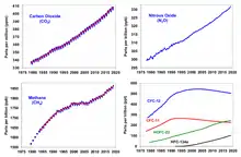 ၁၉၉၀ထုတ်လွှတ်ခြင်းစံအမှတ်အဆင့်များသည်UNFCCCအဖွဲ့ဝင်များ၏ညီလာခံ(ဆုံးဖြတ်ချက်၂/စီပီ.၃)မှလက်ခံခဲ့ပြီးဖြစ်ပြီးIPCC(အိုင်ပီစီစီ)ဒုတိယအကြိမ်အကဲဖြတ်ခြင်းအစီရင်ခံစာအတွက် တွက်ချက်သော"ကမ္ဘာကြီးပူနွေးလာခြင်းအလားအလာ"၏တန်ဖိုးများဖြစ်သည်။ထိုဂဏန်းများကိုအလုံးစုံသောအရင်းအမြစ်များ နှင့်ကာဗွန်ပါဝင်သည့်ဓာတုဒြပ်ပေါင်းများကို စုဆည်းသိမ်းထားသော သဘာဝ သို့မဟုတ် ဖန်တီး ပြုလုပ်ထားသည့် သိုလှောင်ကန်များကို တွက်ချက်ရာတွင် ဖန်လုံအိမ်ဓာတ်ငွေ့ထုတ်လွှတ်ခြင်း မြောက်မြား စွာကို နှိုင်းယှဉ်ခြင်း ပြုနိုင်သော (ကာဗွန်ဒိုင်အောက်ဆိုဒ်) တူညီသည့်ပမာဏများသို့ ပြောင်းလဲခြင်းအတွက် အသုံးပြုသည်။