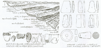 - ၂၀၀၄ ခု၊ ဇူလိုင်လမှာ ပထမ အကြိမ် မုံရွေး စာအုပ်တိုက် အမှတ်စဉ် (၁၃၄) အဖြစ် ထုတ်ဝေ ဖြန့်ချိခဲ့တဲ့ ဒေါက်တာ သန်းထွန်းရဲ့ 'မြန်မာ့ သမိုင်းပုံ' Myanmar History Told in Pictures စာအုပ်မှ "ကျောက်ခေတ်သစ်" အခန်း