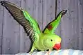 Alexandrine Parakeet flapping her wings