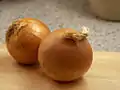 - Yellow onion - generally tapered ends, brown skin over the onion.