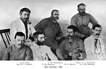J. G. Scott (ဂျေ ဂျီ စကော့(ဒ်)) (အပေါ် ဝဲ) နှင့် Stedman (စတက်မန်း) ခံတပ်ရှိ လုပ်ဖော်ကိုင်ဖက် များ၊ ၁၈၈၉ ။