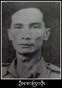 ဒုတိယကမ္ဘာစစ်ဖြစ်ပွားစဉ်က မြန်မာနိုင်ငံမှာ အင်္ဂလိပ်များ ထွက်ပြေး ဆုတ်ခွာသွားကြသည့်အခါ အင်္ဂလိပ်တပ်များနှင့် လိုက်ပါသွားခြင်းမပြုဘဲ မြန်မာနိုင်ငံတွင် နေရစ်ခဲ့သည်။ ယင်းနောက် ဗိုလ်ချုပ်အောင်ဆန်း၏ တာဝန်ပေးချက်အရ ဘီဒီအေ (ဗမာ့ကာကွယ်ရေး တပ်မတော်) တွင် ဗိုလ်မှူးကြီး အဆင့်ဖြင့် တာဝန်ထမ်းဆောင်ခဲ့ပြီး ဂျပန်တော်လှန်ရေး တွင် တိုင်းအမှတ် (၃) စစ်ရေး ခေါင်းဆောင် အဖြစ်တာဝန် ယူခဲ့ရသည်။ ၁၉၄၅ ခု၊ မတ်လ တော်လှန်ရေး စတင်မည့် နေ့ရက် မတိုင်မီ ဝါးခယ်မမြို့တွင် ဂျပန် ကင်ပေတိုင်တို့၏ ဖမ်းဆီးခြင်း ခံခဲ့ရပြီး ယင်းတို့တပ်များ ဆုတ်ခွာရာတွင် မော်လမြိုင်မြို့သို့ ဖမ်းဆီး ခေါ်ဆောင်သွားခြင်း ခံခဲ့ရသည်။ ဒုတိယကမ္ဘာစစ်ကြီးပြီးမှ ပြန်လည်လွတ်မြောက်လာခဲ့သည်။