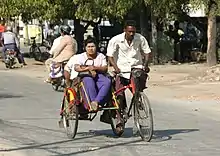 ခရီးသည်တင်ရန် ရည်ရွယ်ပြုလုပ်ထားသော သုံးဘီးပါစက်ဘီး (tricycle) တစ်မျိုးလည်းရှိ၍ ငှားရမ်းသုံးစွဲကြသည်များလည်းရှိသည်။
