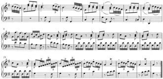 - ဒုတိယတေးသံအုပ်စု (Second Subject group)- ထိုအပိုင်းငယ်သည် ပထမတေးသံအုပ်စုနှင့်မတူဘဲ ကီး၊ တေးသံအသွင်အပြင် စသောနေရာတို့တွင် ကွာခြားပါသည်။