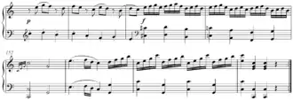 ချိုင်ကော့ဖ်စကီ (Tchaikovsky) ၏ ဆင်ဖိုနီ အမှတ် ၄ ၏ ပထမမုဗ်မန့်တွင် ပထမတေးသံအုပ်စုကို F minor မှ G# minor သို့လည်းကောင်း၊ ဒုတိယတေးသံအုပ်စုကို B major ဖြင့်လည်းကောင်း ပြောင်းလဲရေးသားခဲ့ပါသည်။ ပြန်လာခြင်းအပိုင်းတွင်လည်း D minor ဖြင့်စ၍ F major သို့ပြောင်းလဲကာ နောက်ဆုံး၌ F minor သို့ပြန်လည်ပြောင်းလဲခဲ့ပါသည်။