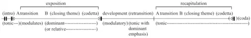 - ကိုဒက်တာ (Codetta)- ထိုအပိုင်းငယ်သည် ပြသခြင်းအပိုင်းပြီးဆုံးရန် ပြုလုပ်သည်။ ကော့ဒ်များရေးသားခြင်းဖြင့် ထိုအပိုင်းကို ပိတ်ပေးနိုင်သည်။ တစ်ခါတစ်ရံတွင် ကိုဒက်တာအပိုင်းမပါဘဲရပ်နိုင်ပြီး နောက်အပိုင်းကိုကူးပြောင်းနိုင်သည်။