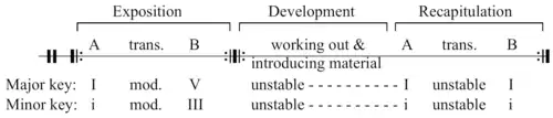 - ပြသခြင်းအပိုင်းပြီးသောအခါ ဖွံ့ဖြိုးခြင်းအပိုင်း (Development) ကလိုက်သည်။ ထိုအပိုင်းတွင် အသုံးပြုထားသော ပင်မတေးသံကို မွမ်းမံပြောင်းလဲ၍ရေးသားရသည်။