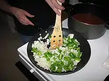 ဆီပူထိုးခြင်း (Sautéing; /ˈsoʊteɪ.ɪŋ/ သို့ US: /soʊˈteɪ.ɪŋ/, /sɔːˈteɪ.ɪŋ/; ပြင်သစ်ဘာသာစကား sauté [sote] မှ ဆင်းသက်)[1] သည် ဆီ (သို့) အဆီပူပူ အနည်းငယ်မျှဖြင့် ချက်ပြုတ်စဉ်အချိန်အတွင်း ဒယ်အိုးကို လှုပ်ပေးခြင်း၊ (သို့) အစားအစာကို မကြာခဏ လှန်လှောပေးခြင်းတို့ ပြုလုပ်ခြင်းနည်း ဖြစ်သည်။[2]