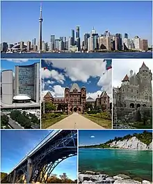 တိုရွန်တိုမြို့တွင် လှပသော အဆောက်အအုံကြီးများ အများ အပြားရှိသည့်အနက် မြို့လယ်ရှိဘုရင်မပန်းခြံအတွင်း၌ သဲ ကျောက်အနီအပြာဖြင့် ဆောက်လုပ်ထားသော ပါလီမန် အဆောက်အအုံများ မိုးထိအဆောက်အအုံများ၊ မြို့တော်ခန်းမ၊ ဘုရားရှိခိုးကျောင်း၊ တက္ကသိုလ်ကျောင်း၊ ကနေဒီယန် ကူးသန်း ရောင်း ဝယ်ရေးဘဏ်နှင့် ရွိုင်ယယ်ယော့ဟိုတယ်တို့သည် ထင်ရှား၏။ တိုရွန်တိုတက္ကသိုလ်၌ပါဝင်သော ကောလိပ် ကျောင်းပေါင်း လေးကျောင်းရှိသည်။ ထိုပြင် ကူးသန်းရောင်း ဝယ်ရေးနှင့် စက်မှုလက်မှုပညာသင်တန်းမြင့်ကျောင်း၊ မိန်းက လေးကျောင်းနှင့် ဥပဒေပညာသင်ကျောင်းများလည်း ရှိလေ သည်။ တိုရွန်တိုမြို့၌ ဆေးရုံပေါင်း ရ၂ ခုရှိရာ၊ ၁၀ ခုမှာ ပြည်သူ့ဆေးရုံကြီးများဖြစ်၍ တိုရွန်တိုဆေးရုံမှာ အကြီးဆုံး ဖြစ်သည်။