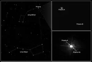 | ပကတိ အရွယ်အစား (MV) | -3.6(α UMi Aa)[1] 3.6(α UMi Ab)[1] 3.1(α UMi B)[1] |