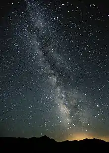 ![]() Paranal Observatory ကောင်းကင်အထက်မှ နဂါးငွေ့တန်း၏ ဂယ်လက်တစ်ဗဟို (လေဆာသည် တယ်လီစကုပ်အတွက် လမ်းပြကြယ်လုပ်ပေးသည်။) | |