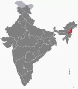 ![]() နာဂလန်ပြည်နယ်၏ တည်နေရာ (red) India အတွင်း (dark grey) | ||