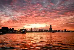 Beautiful Skyline of Kaohsiung harbour, Taiwan at sunrise.