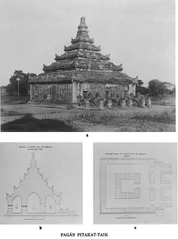 ပိဋကတ်တိုက်သည် သရပါတံခါးအနီးတွင် ရှိသည်။ ၁၀၅၇ ခုနှစ်တွင် အနော်ရထာမင်း (၁၀၄၄ - ၁၀၇၇)သည် သုဝဏ္ဏဘုမ္မိ သထုံပြည်မှ ပိဋကတ် အစုံသုံးဆယ်ကို ဆင်ဖြူ သုံးကျိပ် နှစ်စီးဖြင့် ပုဂံပြည်သို့ ပင်ဆောင်ခဲ့ပြီးနောက် ပိဋကတ်တိုက်တွင် ထားရှိစေခဲ့သည်ဟု အစဉ်အလာ ဆိုကြလေသည်။