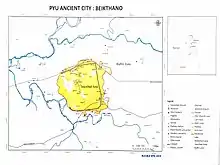 ကနေ့ ဒေသခံလူတွေက ဗိဿနိုးမြို့ဟောင်းလို့ ခေါ်တဲ့ မြို့ဟောင်းကြီးက မြောက်လတ္တီကျူ ၂၀˚ နှင့် အရှေ့လောင်ဂျီကျူ ၉၅˚၂၃' မှာ တည်ရှိတယ်။ တောင်တွင်းကြီးရဲ့ အနောက်တောင် ၁၂ မိုင် (၁၉.၃၀၈ ကီလိုမီတာ) ရှိတယ်။ မြို့ရိုးက လေးထောင့် အတိအကျ မဟုတ်ပေမယ့် တဖက်မှာ ၁ မိုင် ၅ ဖာလုံ (၂.၈ ကီလိုမီတာ) ရှိတယ်။ အနောက်ဘက်မှာတော့ ရေအိုင်ကြီး ရှိနေလို့ နံရံ မလိုပါ။ ဒါကြောင့် မြို့ရိုး သုံးဖက်သာ ရှိပါတယ်။ မြို့ရိုး တဖက်စီမှာ တံခါးပေါက် သုံးပေါက် ရှိမယ်လို့ ထင်ပါတယ်။ မြို့တံခါးက ပေ ၂၀ ကျယ်ပြီး ဝဲယာမှာ နံရံ အရှည်တွေ ကတော့ပုံ တည်ဆောက်ထားတယ်။ လမ်းထောင့်တွေကို လုံးထားလို့ ခပ်မြန်မြန် ပြေးဆွဲတဲ့ ရထားတွေ၊ လမ်းကွေ့မှာ အခက်အခဲ မရှိအောင် အခုလို ထောင့်ချိုးထားတာ ဖြစ်မယ်လို့ ထင်ပါတယ်။ မြို့ရိုးနဲ့ ကျုံးတွေက ရန်သူတွေ အလွယ်တကူ ထိုးဖောက်ပြီး ဝင်မလာနိုင်အောင် ခိုင်ခိုင်ခံ့ခံ့ တည်ဆောက်ထားတယ်။ မြို့အလယ်မှာ အလျားကိုက် ၅၀၀၊ အနံကိုက် ၃၅၀ (၄၅၅.၇၂ မီတာ X ၃၂၀ မီတာ) ရှိတဲ့ နံရံတခု ရှိပါတယ်။ နံရံအတွင်းဟာ နန်းတော်ရာ ဖြစ်မယ်လို့ ထင်ပါတယ်။