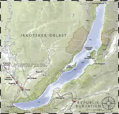 ရုရှားနိုင်ငံ ဆိုက်ဘေးရီးယားဒေသ တောင်ပိုင်း အာကွတ် အိုဘလတ်စ် အုပ်ချုပ်ရေး ဒေသ (Irkutsk Oblast) နှင့် ရုရှားနိုင်ငံ၏ တစိတ်အပိုင်း ဖြစ်သော ဘားရတ်နိုင်ငံ (Buryat Republic) တို့ ကြားတွင် တည်ရှိသည်။ ကမ္ဘာပေါ်တွင် ထုထည် အများဆုံး ရေချိုရေကန်ဖြစ်ပြီး ကမ္ဘာပေါ်ရှိ အေးခဲမနေသော ရေချိုများ၏ ၂၀ ရာခိုင်နှုန်းမျှ ရှိသည်။