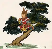 ကုသနာဋ္ဌိဇာတ်၌ ဗာရာဏသီမင်းကြီး၏ တစ်ပင်တိုင် နန်းပြာဿဒ်သည် တိုင်နဲ့နေသဖြင့်၊ လက်သမားတို့သည် ကျား ထောက်ရန် သစ်ကိုရှာဖွေရာ၊ ဥယျာဉ်တော်၌ မင်္ဂလာပြုသော သစ်ပင်ကို တွေ့သဖြင့် မင်းကြီးထံ ခွင့်ပန်ပြီးလျှင် ပူဇော်ပသ၍ နက်ဖြန်ခုတ်တော့မည်ဟု တိုင်ကြားပြီး ပြန်ကြ၏။ သစ်ပင် စောင့် ရုက္ခစိုးလည်း နက်ဖြန် ခုတ်တော့မည်ကိုသိလျှင် ငါ့ဗိမာန် ပျက်တော့မည် ငါ့မှာ ရွှေ့ပြောင်းရန် နေရာလည်း မရှိဟု ပူပင်သော ကရောက်လျက် သားငယ်တို့ကိုဖက်၍ ငို ကြွေးလေ၏။ အနီးရှိ အဆွေခင်ပွန်းဖြစ်သော ရုက္ခစိုးနတ်တို့ လည်း ငိုကြွေးသံကို ကြားလျှင် လာရောက်မေးမြန်းကာ သစ်ပင်ကို ခုတ်တော့မည့် အကြောင်းကို သိလျှင် တားမြစ်ရန် စိတ်မကူးကြဘဲ အဆွေရုက္ခစိုးကိုသာ ဖက်၍ ငိုကြွေးကြပြန်၏။ ထိုအခါ အနီးရှိ သမန်းမြက်ဖုတ် ကျူရုံစောင့် ရုက္ခစိုး သည် ငိုကြွေးသံတို့ကိုကြား၍ လာရောက်မေးမြန်းပြန်ရာ၊ သစ်ပင်ကို ခုတ်တော့မည့်အကြောင်းကို သိလျှင်၊ အဆွေရုက္ခစိုး အား အဆွေ မစိုးရိမ်ပါနှင့်၊ နက်ဖြန် လက်သမားတို့လာသော အခါ မခုတ်ရအောင် ကြံဆောင်မည်။ ကျွန်ုပ်၏ ပညာဉာဏ် စွမ်းကို စောင့်ကြည့်ပါ ဝန်ခံ လေ၏။ နက်ဖြန် လက်သမား တို့လာသောအခါ သမန်းမြက်ဖုတ် ကျူရုံစောင့် ရုက္ခစိုးသည် လက်သမားတို့မြင်လောက်အောင် ပုတ်သင်ယောင်ဆောင်၍ ခုတ်တော့မည့် မင်္ဂလာသစ်ပင်၏ အမြစ်ကြားသို့ဝင်ကာ အခေါင်းမှ တက်သကဲ့သို့ပြု၍ ခွကြား၌ နေလျက် ဦးခေါင်းကို ညိတ်ကာပြလေ၏။ ထိုအခါ လက်သမားတို့သည် ပုတ်သင် ကိုမြင်လျှင် ဤသစ်ပင်ကား အခေါင်းရှိသည်။ ကျားထောက်ရန် မသင့်ဟု မခုတ်တော့ဘဲ သွားကြ၏။