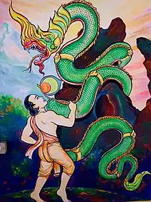 အခြား ပုဏ္ဏားတဦးသည် ဂဠုန်တခုက ရသေ့တပါးအား ပေးသည့် နဂါးနှင့်မြွေတို့ ကြောက်သော မန္တာန်တပုဒ်ကို ထိုရသေ့ထံမှ ရခဲ့၍ အလမ္ပာယ်အဖြစ် အသက်မွေးရန် ထွက်ခဲ့သည်။ ယမုနာမြစ်ကမ်းဘေးတွင် အလိုခပ်သိမ်းရစေသော ပတ္တမြားကို ထား၍ ရေကစား ပျော်ရွှင်နေသော နဂါးမပျိုတို့သည် ပုဏ္ဏား၏ မန္တာန် ရွတ်ဆိုသံကိုကြားလျှင် ကြောက်လန့်ထွက်ပြေးကြသဖြင့် ပတ္တမြားကို ပုဏ္ဏားရလေသည်။