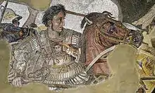 ![]() "Alexander fighting king Darius III of Persia"၊ Alexander Mosaic၊ Naples National Archaeological Museum. | |||||
