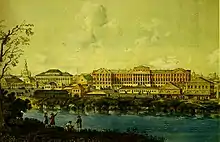 ယနေ့ခေတ် မော်စကိုတက္ကသိုလ်သည် ၁၇၅၅ ခုနှစ်မှ ၁၇၈၇ ခုနှစ်တွင် ရင်ပြင်နီ၌ တည်ရှိခဲ့သော ဗဟိုဆေးသိုလှောင်ရုံနေရာအား သိမ်း၍တည်ဆောက်ခဲ့ခြင်း ဖြစ်သည်။ ကြီးမြတ်သော ကတ်သရင်းဘုရင်မကြီးသည် တက္ကသိုလ်ကို မာဟာဗာယားလမ်းနံဘေးတွင် နီယိုဟန် အဆောက်အဦကြီးသို့ ပြောင်းရွေ့ပေးခဲ့သည်။ နီယို-ပါလာဒိုင်ယန်စတိုင် ပင်မအဆောင်အအုံကြီးသည် မတ်ဗီ ကာဇာကော့ဗ်၏လက်ရာဖြစ်ပြီး ၁၇၈၂ ခုနှစ်မှ ၁၇၉၃ ခုနှစ်အတွင်း တည်ဆောက်ခဲ့ကြသည်။ ၁၈၁၂ ခုနှစ် မော်စကိုမြို့ မီးလောင်ခံရခြင်းဖြစ်ခဲ့ပြီးနောက် ဒိုမီနီကို ဂီလီယာဒီမှ ပြန်လည်တည်ဆောက်ခဲ့သည်။