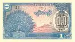 ၁ ကျပ် | ၁၂၄ × ၆၀ မီလီမီတာ | အစိမ်း | ဗိုလ်ချုပ်အောင်ဆန်း | ဗိုင်းငင်စက် | ၃၁ အောက်တိုဘာ ၁၉၇၂ | အသုံးပြုခြင်း နည်းပါးကာ ပျောက်ကွယ် |