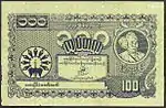 ၁၀၀ ကျပ် | ၁၇၆ × ၁၁၀ မီလီမီတာ | အစိမ်းဖျော့ | ဗိုလ်ချုပ် အောင်ဆန်း | စောင်းကောက် | ၁ ဩဂုတ် ၁၉၇၆ | ၃ နိုဝင်ဘာ ၁၉၈၅ |