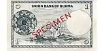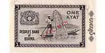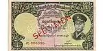 ၁ ကျပ် | ပန်းရောင်၊ အဝါနှင့် မီးခိုးရောင် | ဗိုလ်ချုပ်အောင်ဆန်း | ရွက်လှေနှင့် One Kyat | ၁၂ ဖေဖော်ဝါရီ ၁၉၅၈ | ||