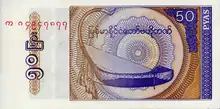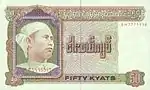 | ၅၀ ကျပ် | လိမ္မော်-အညို | ယွန်းထည် | ၂၇ မတ် ၁၉၉၄ | ||||