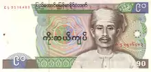| ၁ ကျပ် | လိမ္မော် | ဗိုလ်ချုပ်အောင်ဆန်း | Guilloché pattern | ဗိုလ်ချုပ်အောင်ဆန်း | ၁ မတ် ၁၉၉၀ | ||