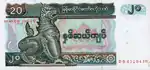 | ၂၀ ကျပ် | 145 × 70 မီလီမီတာ | အစိမ်း | ရန်ကုန် ပြည်သူ့ရင်ပြင်နှင့် ဆင်ရေပန်း | တန်ဖိုးအပေါ် ခြင်္သေ့ပုံ | ၂၇ မတ် ၁၉၉၄ | ||