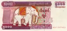| ၅၀၀၀ ကျပ် | ၁၅၀ × ၇၀ မီလီမီတာ | လိမ္မော်နှင့် ပန်းရောင် | ဆင် | နေပြည်တော် ပြည်ထောင်စုလွှတ်တော် အဆောက်အအုံ | တန်ဖိုးအပေါ် ဆင်ပုံ | ၁ အောက်တိုဘာ ၂၀၀၉[24] | Value above watermark |