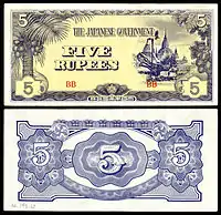 ၁၉၄၅-ခုနှစ် ဒုတိယကမ္ဘာစစ်အပြီး ဗြိတိသျှများ မြန်မာနိုင်ငံသို့ ပြန်လည်ဝင်ရောက်လာပြီး ဂျပန်ငွေစက္ကူများကို တရားမဝင်ဟု ဗြိတိသျှစစ်အုပ်ချုပ်ရေး (British Military Administration) က ကြေညာခဲ့သည်။ အိန္ဒိယငွေစက္ကူပေါ်တွင် ဗြိတိသျှစစ်အုပ်ချုပ်ရေး၊ မြန်မာပြည်၌သာ တရားဝင်သည်-ဟူသော စာတမ်းကို ထပ်ဆင့်ရိုက်နှိပ်ပြီး မြန်မာနိုင်ငံအတွက် သီးသန့်ငွေစက္ကူများ ထုတ်ဝေခဲ့သည်။ ထိုစဉ်က စစ်အုပ်ချုပ်ရေး ငွေစက္ကူများ၊ အိန္ဒိယရီဇတ်ဘဏ်က မြန်မာပြည်အတွက် ထုတ်ဝေခဲ့သော ငွေစက္ကူများနှင့် အိန္ဒိယငွေစက္ကူအားလုံး မြန်မာပြည်တွင် တရားဝင်သုံးစွဲခွင့် ရှိသည်။