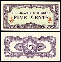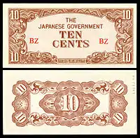 ၁၉၄၂ ခုနှစ်တွင် ဂျပန်အစိုးရမှ ၁၊ ၅ နှင့် ၁၀ ဆင့်၊ ¼၊ ½၊ ၁၊ ၅၊ ၁၀ နှင့် ၁၀၀ တန် ရူပီးငွေများကို ရိုက်နှိပ်သုံးစွဲခဲ့သည်။ ယင်းတို့ကို ၁၉၄၄ ခုနှစ်တွင် ၁၊ ၅၊ ၁၀ နှင့် ၁၀၀ ကျပ်တန်များဖြင့် အစားထိုးသုံးစွဲခဲ့သည်။ ၁၉၄၅ ခုနှစ်တွင် ဂျပန်ကျပ်ငွေများအစား ၁၊ ၅၊ ၁၀ နှင့် ၁၀၀ တန်ရူပီးများ ရိုက်နှိပ်သုံးစွဲခဲ့ပြန်သည်။