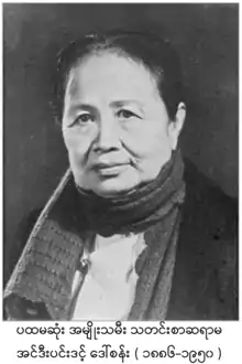 | ၆၆ | ပထမဆုံး အဂ္ဂမဟာသီရိသုဓမ္မာသိင်္ဂီဘွဲ့ ရရှိသူ | နဂါးဒေါ်ဦး | (၁၉၁၀-၁၉၉၅) | ||