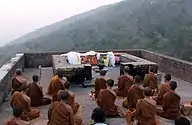 တောင်ထိပ်တွင် တရားအားထုတ်နေကြသော ဗုဒ္ဓဘာသာရဟန်းတော်များ