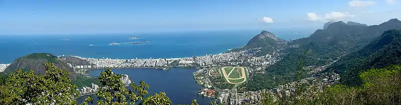 ![]() From the top, clockwise: panorama of the buildings of the Rio Downtown; statue of Christ the Redeemer on Corcovado; Sugarloaf Mountain with Botafogo's beach; Barra da Tijuca beach with the Pedra da Gávea at background; Museum of Tomorrow in Plaza Mauá with Rio–Niterói Bridge at background and tram of Santa Teresa. | |||