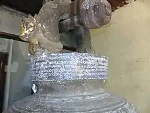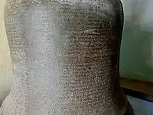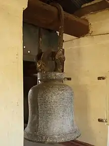 (၃၅) အကယ်၍ ပျက်စီးခဲ့သော်ကား ပြုပြင်နိုင်ကြပါစေသတည်း။ သက္ကရာဇ် (၉၁၉) ခု၊ နယုန်လပြည့်လွန် (၁၁) ရက် တနင်္ဂနွေနေ့ ပြိဿလဂ်၊ ပုဏ္ဏတိထီ၊ ရာဇာနက်သက်၊ သောကြာနဝင်း၊ သောကြာယောဂ ကာလ၌ အရပ်ဆယ်မျက်နှာကို အောင်မြင်တော်မူသော အသျှင်ဘဝရှင် မင်းတရားကြီး သွန်းတော်မူခဲ့သော ခေါင်းလောင်းတော်။[1]