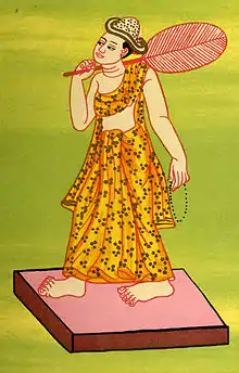 ကိုရင်ပုံစံဖြင့် ထုလုပ်ကြပြီး လက်တစ်ဖက်တွင် စိပ်ပုတီးပါ၍ ကျန်လက်တစ်ဖက်တွင် ယပ်တောင်ကို ကိုင်ဆောင်ထားသည်။
