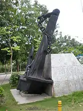 Earliest known ancient records that carried the name of Shenzhen date from 1410 during the Ming Dynasty. Local people called the drains in paddy fields “zhen” (圳). Shenzhen (深圳) literally means “deep drains” as the area was once crisscrossed with rivers and streams, with deep drains within the paddy fields. The character 圳 is limited in distribution to an area of South China with its most northerly examples in Zhejiang Province which suggests an association with southwards migration during the Southern Song Dynasty (12th and 13th centuries).[5] The County town at Xin'an in modern Nanshan dates from the Ming Dynasty where it was a major naval centre at the mouth of the Pearl River. In this capacity it was heavily involved in 1521 in the successful Chinese action against the Portuguese Fleet under Fernão Pires de Andrade. This battle, called the Battle of Tunmen, was fought in the straits between Shekou and Lintin Island.[3]