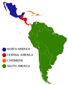 ပထဝီဝင်၊ နိုင်ငံရေး၊ ယဉ်ကျေးမှု စသည်တို့ကို အခြေခံ၍ လက်တင်အမေရိက ကို အမျိုးမျိုးခွဲခြားနိုင်သည်။ ပထဝီဝင်အားဖြင့် ပိုင်းခြားထားပုံမှာ မြောက်အမေရိက၊ ဗဟိုအမေရိက၊ ကာရစ်ဘီယံနှင့် တောင်အမေရိက ဟူ၍ဖြစ်သည်။[6] နိုင်ငံရေးပထဝီဝင်အရ ခွဲခြားထားသည့် နယ်မြေဒေသများမှာ တောင်ပိုင်းကတော့ပုံဒေသ၊ ဂီယားနားနယ်များနှင့် အန်းဒီးဒေသ တို့ဖြစ်သည်။ ဘာသာဗေဒအားဖြင့် ပိုင်းခြားထားသည့် ဒေသများမှာ ဟစ်စပန်းနစ်အမေရိက၊ ပေါ်တူဂီအမေရိကနှင့် ပြင်သစ်အမေရိက တို့ဖြစ်ကြသည်။