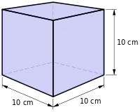 တစ် လီတာ သည် အလျားတစ်ဘက်တွင် ၁၀ စင်တီမီတာ စီ ရှိသော ဤသေတ္တာ ၏ ထုထည် နှင့် ညီမျှသည်။