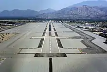 ပြေးလမ်းမီးများကို ညဘက်လေယာဉ်ဆင်းရာတွင် မြင်သာရန် တပ်ဆင်ထားသည်။